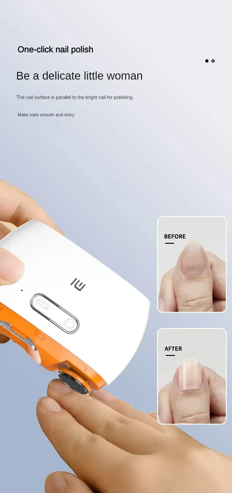 Características principales: • Pulido automático: Corta y pule las uñas en un solo paso, dejándolas suaves y perfectas sin esfuerzo • Recargable y portátil: Batería de larga duración con carga USB, ideal para llevar de viaje • Seguro para toda la familia: Diseño especialmente pensado para uso infantil y adulto, sin riesgo de cortes • Diseño minimalista Xiaomi: Estética premium con acabados de calidad y materiales duraderos • Ligero y manejable: Solo 210g de peso para un control total y comodidad de uso